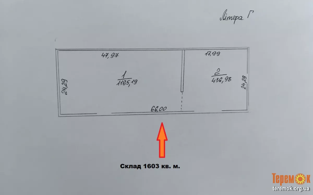 Площа 1603 м2, 1 поверх, можливий поділ від 350 кв. м.