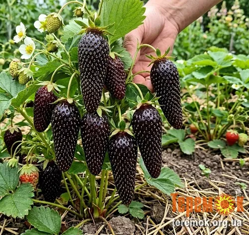 Розсада екзотичної чорноплодної полуниці сорту Блек Джек.Сорт відрізняєці надзвичайно крупними ягодами чорного кльору,видовженої форми,якоди солодкі,мають присмак ожини.Ціна вказана за кущ.Відправка Укрпоштою по передоплаті,Новою поштою можливо наложеним.