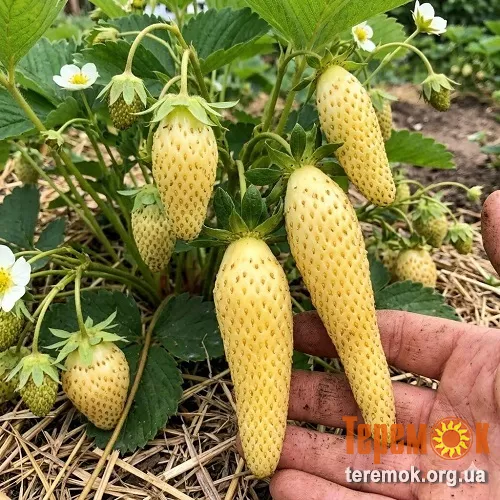 Розсада екзотичного,жовтоплодного сорту полуниці Голд Фінгер.Сорт ремонтантного плодоношення.плодоношення триває з кінця квітня до початку жовтня, відрізняється надзвичайно крупними ягодами яскраво-жовтого кольору,солодкі з присмаком дині.Відправка Укрпоштою по передоплаті,Новою поштою можливо наложеним розрахунком.