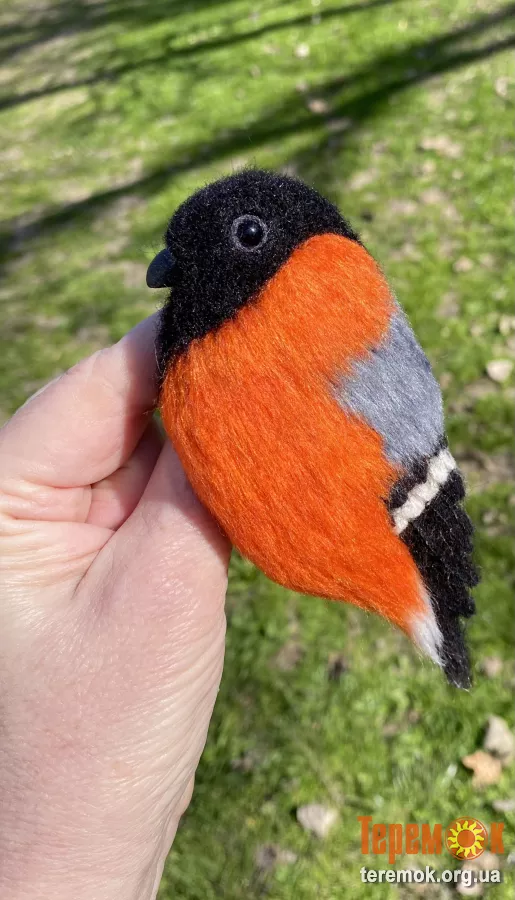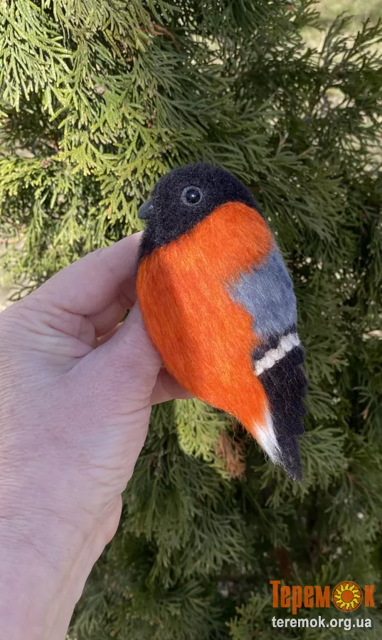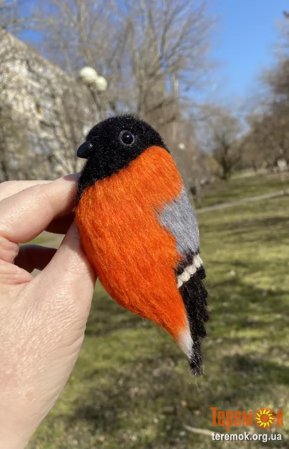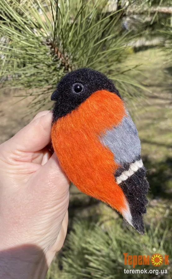 Брош снегірь валяна з шерсті прикраса птица войлочна іграшка хендмєйд сувенір подарунок