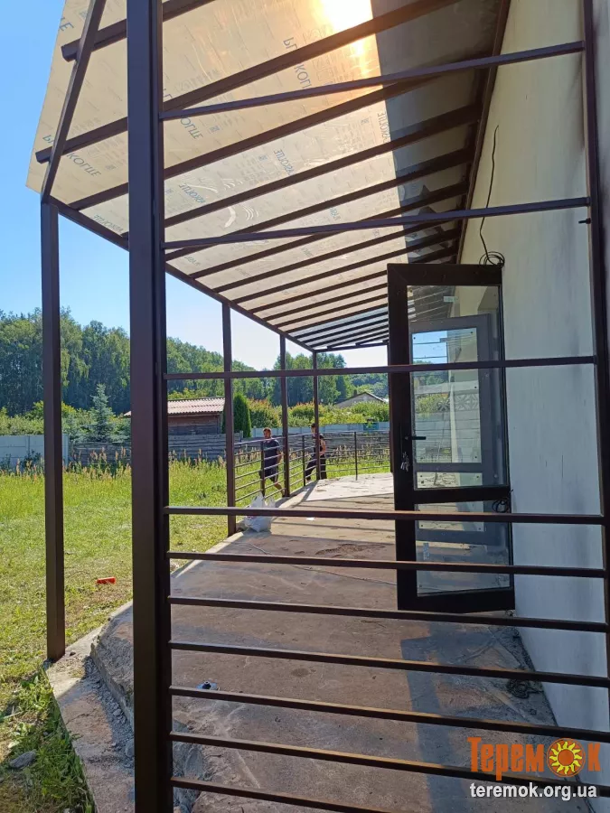 Виготовляємо різні варіанти: прямі, арочні, двосхилі, ковані або сучасні мінімалістичні конструкції. Використовуємо якісний метал, надійні кріплення та сучасні покрівельні матеріали — полікарбонат, скло, металопрофіль або металочерепицю.