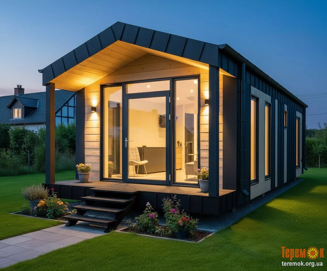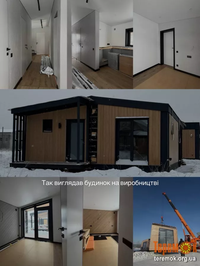 Продаємо готові модульні будинки.Це сучасний будинок із повністю утепленим каркасом, готовими фасадами та вже встановленими енергоефективними вікнами й якісними вхідними дверима.У вартість входить повний комплекс робіт та оснащення, а саме: зовнішнє й внутрішнє оздоблення будинку, вхідні двері та вікна, система теплої підлоги з окремими програматорами для кожної кімнати, міжкімнатні двері.Також виконано розведення основних інженерних комунікацій - водопостачання, електрики та каналізації. Будинок укомплектований світильниками, вимикачами, розетками та декоративною підсвіткою. У ванній кімнаті встановлено інсталяцію з унітазом і бойлер.Додатково передбачено магістралі під кондиціонер і генератор, підігрів підключення води, рекуператори повітря, а також ганок з навісом і сходами.