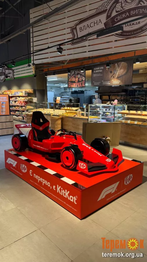 Рекламний болід KitKat F1 від студії «ОМІ» вже підкорює відвідувачів у Сільпо!