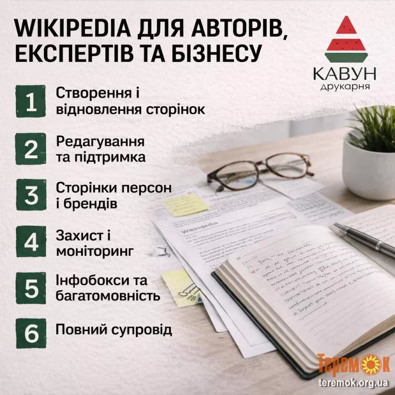Працюємо з авторами, коучами, компаніями, публічними особами та освітніми проєктами. Допомагаємо знизити ризики видалення та забезпечуємо стабільну присутність у Вікіпедії.