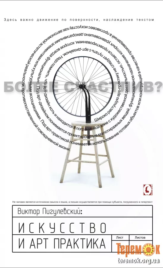 В.О. Пигулевский рассматривает основные концепции и элементы искусства, отслеживая трансформацию его понимания от элитарных концепций к теории искусства как социального института. Главный предмет искусства – человек и его творческие возможности, следовательно, понимание искусства предполагает постоянное расширение познавательного горизонта. Эстетику манипуляции с объектами и действиями людей в самой действительности автор характеризует как арт-практику. Такая модель «искусства» не укладывается в традиционные определения. Именно такой нестандартный подход к искусству и выделяет эту книгу. Ведь продукты такого искусства могут стать, а могут и не стать «художественным событием», или настоящим произведением.