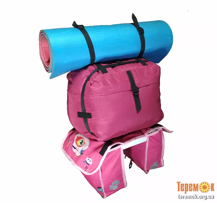 Назначение - вело прогулки и не сложные вело походы. В основе рюкзака лежат перемётные вело сумки объёмом 2х10 л. На клапана которых нашиты крепления. Клапана закрываются на липучках. Ткань сумок капронвинил. Картонные вставки жесткости из фанеры заменены на пластик. Схема крепления сумок к велосипеду видна на фото № 4. Для этих сумок сшит баул объёмом 34 л. Ткань баула polyster с внутренним акриловым покрытием. Замок трактор с 1 собачкой. Замок прикрыт от пыли и грязи. Ремень с пряжкой позволяет снять поперечную нагрузку с замка. На сумках и бауле нашиты ручки для удобства установки на велосипед. Объём баула можно уменьшить стянув крепёжные ремни. Заправка крепёжных ремней с правой части сумок по часовой стрелке. Петли на бауле справа позволяют пройти пряжке. Есть петли для дополнительного крепления снаряжения. См. фото № 5. В верхней части баула есть крепления для коврика (каремата). Коврик желательно перевозить в чехле или п/э мешке. Беречь от пыли и грязи. Все крепёжные ремни в комплекте. Вес 1.0 кг. Эксплуатировать можно в комплекте. Можно отдельно сумки. Отдельно баул. Фирма Sweetie Pie. Есть Viber, WhatsApp, Telegram.