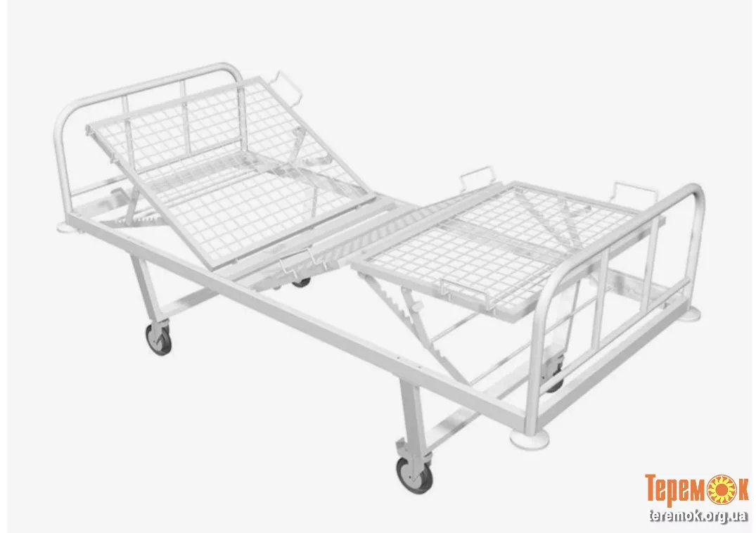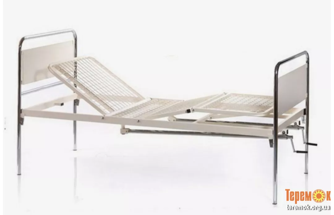 4) Ліжко медичне ЛМ -3-2. Медичне ліжко загально-лікарняне ЛМ-3-2 з механічним регулюванням секцій вручну за рахунок обертання ручок.