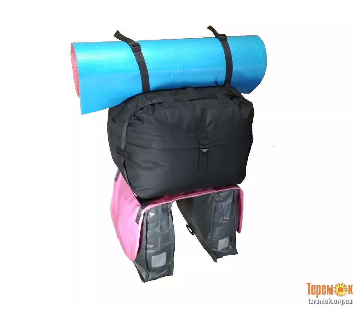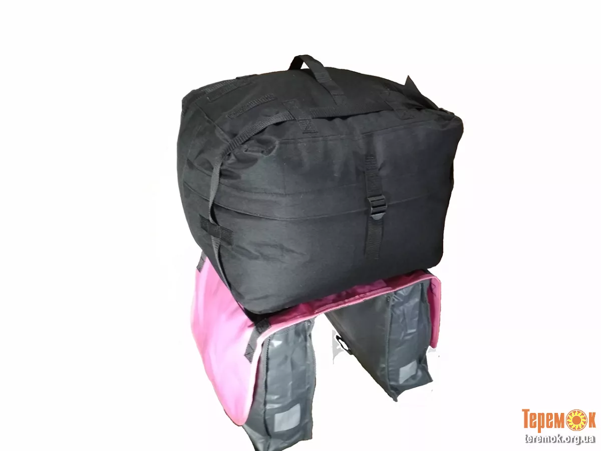 Б/у в хорошем состоянии. Назначение – вело прогулки и не сложные вело походы. В основе рюкзака лежат перемётные вело сумки объёмом 2х9 л. На клапана нашиты крепления для баула. Клапана закрываются на липучках. Ткань сумок плотный polyster. Картонные вставки жесткости заменены на пластик. Схема крепления сумок к велосипеду видна на фото № 4. Для этих сумок сшит баул объёмом 40 л. Ткань баула капрон. Баул закрывается на молнии. Замок трактор с 2 собачками. Замок прикрыт от пыли и грязи. Ремень с пряжкой позволяет снять поперечную нагрузку с замка. На сумках и бауле нашиты ручки для удобства установки на велосипед. Объём баула можно уменьшить стянув крепёжные ремни. Заправка крепёжных ремней с правой части сумок по часовой стрелке. Петли на бауле справа позволяют пройти пряжке. На клапанах есть петли для дополнительного крепления снаряжения. См. фото № 5. В верхней части баула есть крепления для коврика (каремата). Коврик желательно перевозить в чехле или п/э мешке. Беречь от пыли и грязи. Все крепёжные ремни в комплекте. Эксплуатировать можно в комплекте. Можно отдельно сумки. Отдельно баул. Вес 1.01 кг.