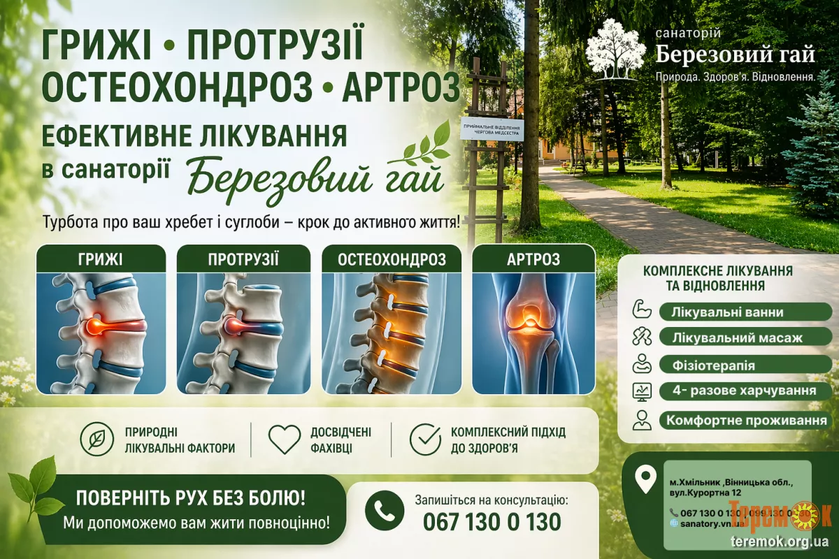 Санаторій «Березовий гай» запрошує на ефективне лікування та відновлення опорно-рухового апарату.