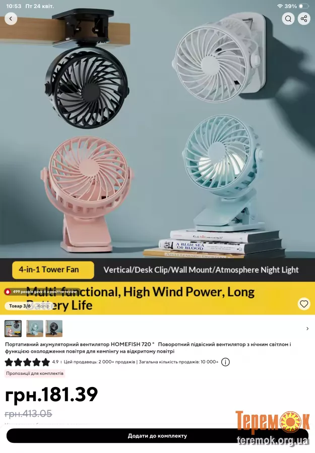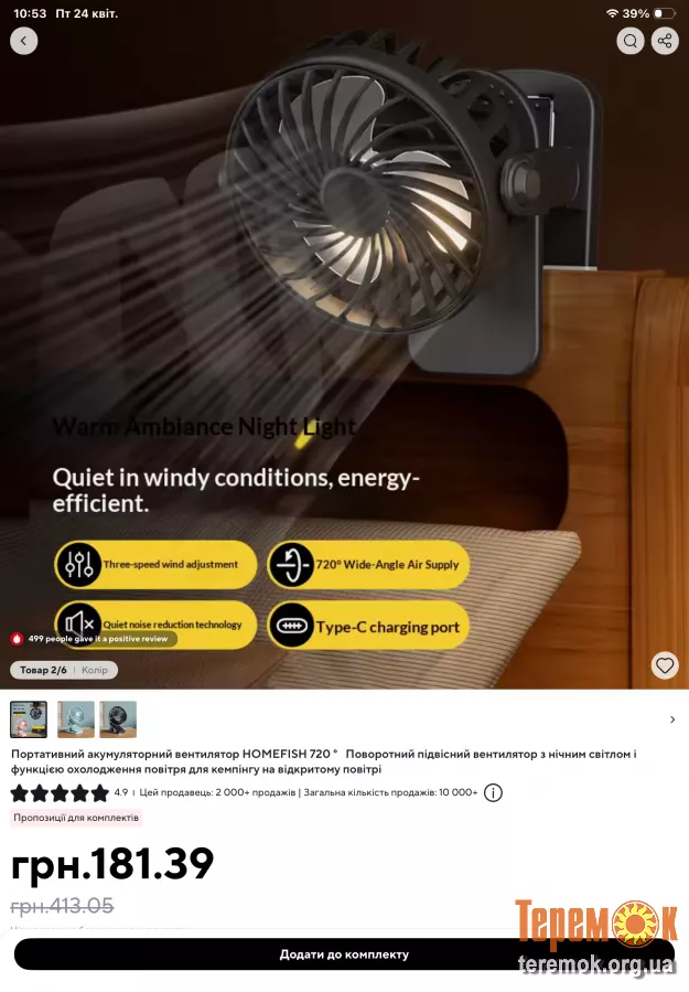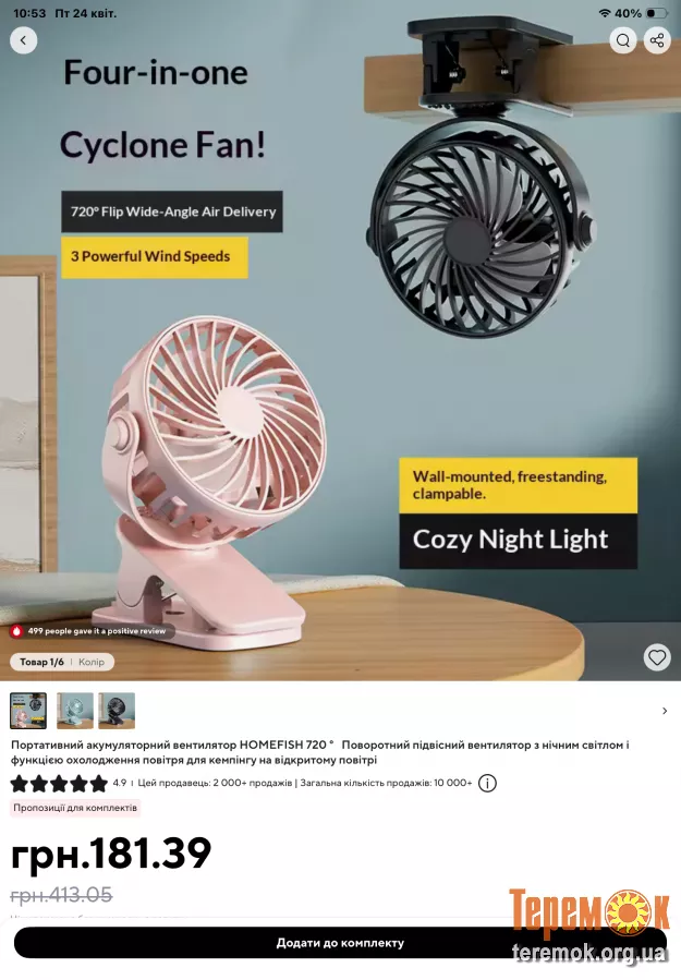 Портативний акумуляторний вентилятор HOMEFISH 720 ° Поворотний підвісний вентилятор з нічним світлом і функцією охолодження повітря для кемпінгу на відкритому повітрі.Великий вибір.